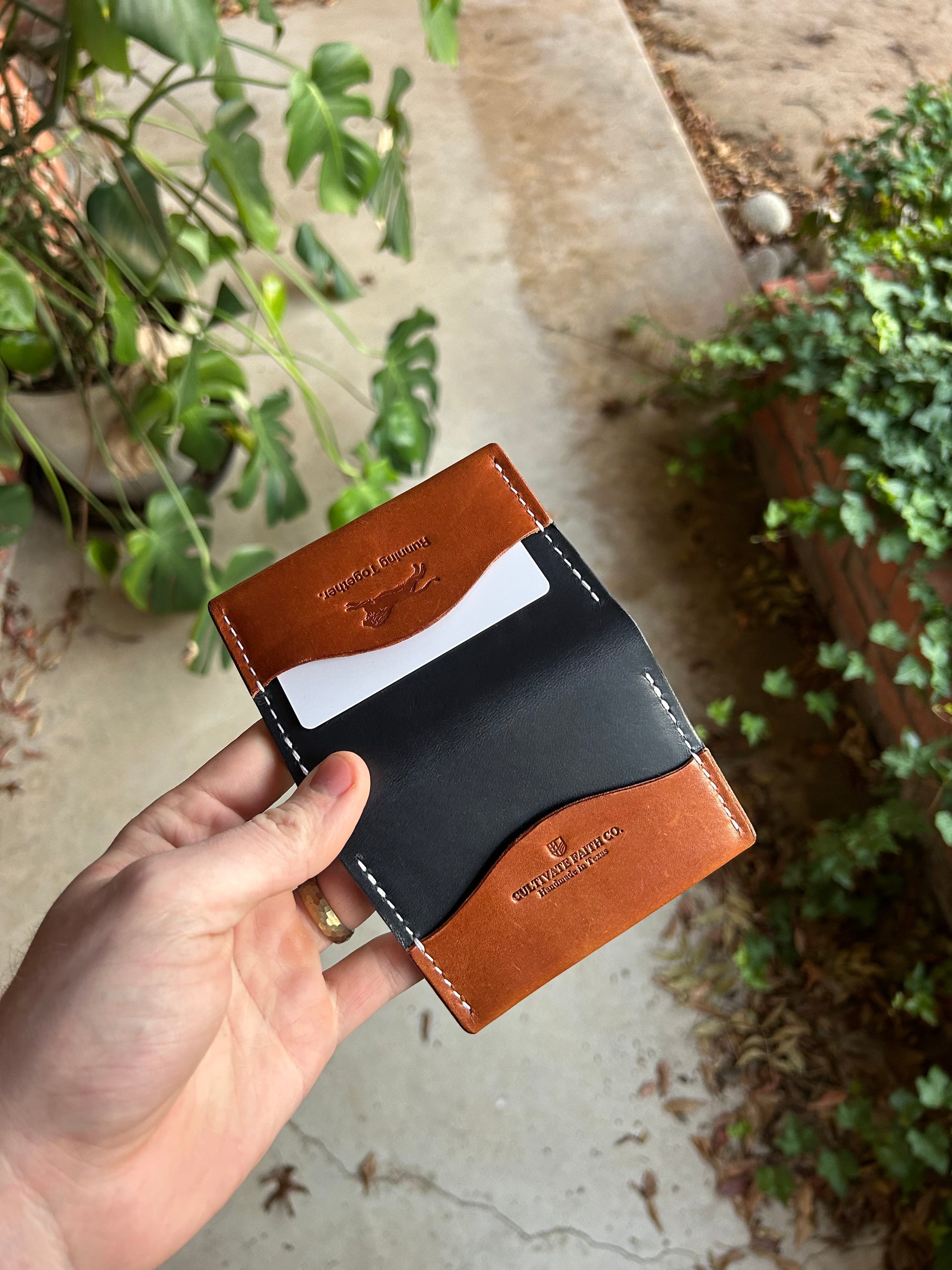 The Classic is a timeless 4-slot design, comfortably holding 4-6 cards and some cash. All of our leather wallets are hand cut, stitched, burnished, waxed, and oiled.